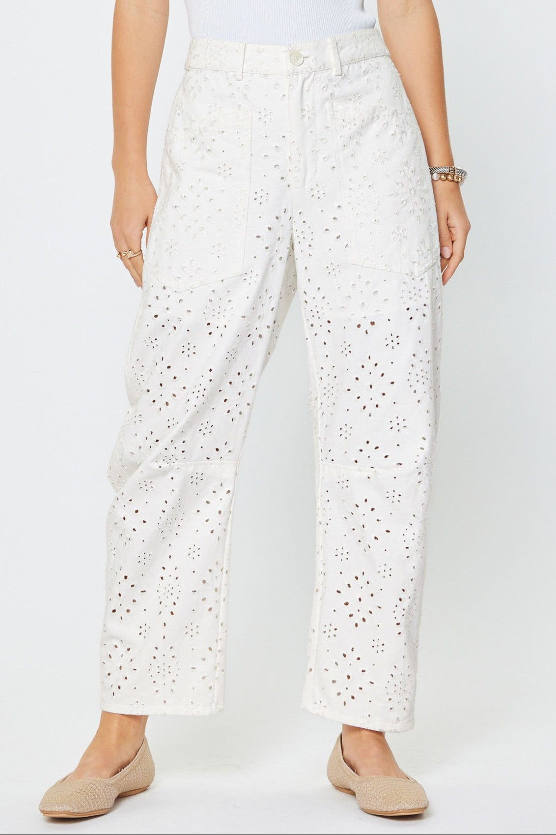 Beautiful Eyelet Barrel Pants
