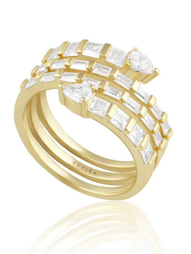 • Introducing the Natalia CZ Ring, a timelessly elegant wrap ring accented with shimmering cubic zirconia stones.