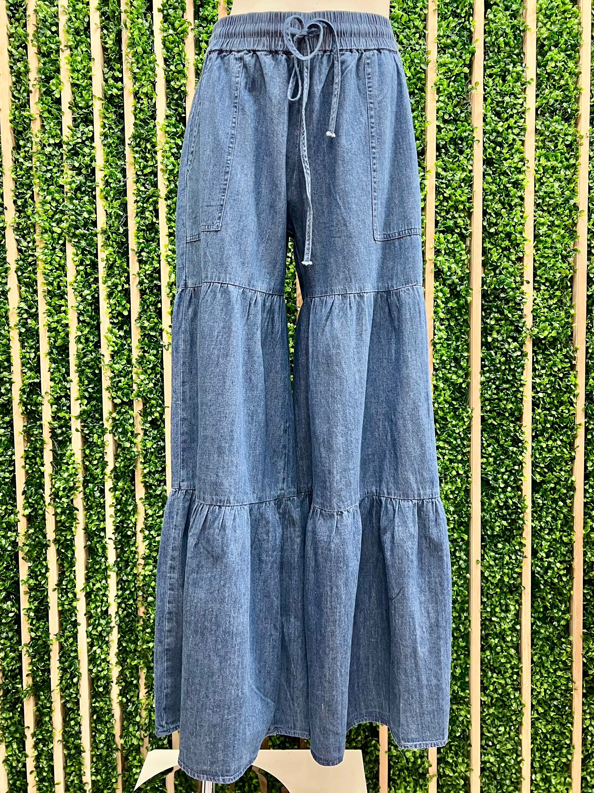 Dark Denim Minera Washed Tiered Wide Leg Pant