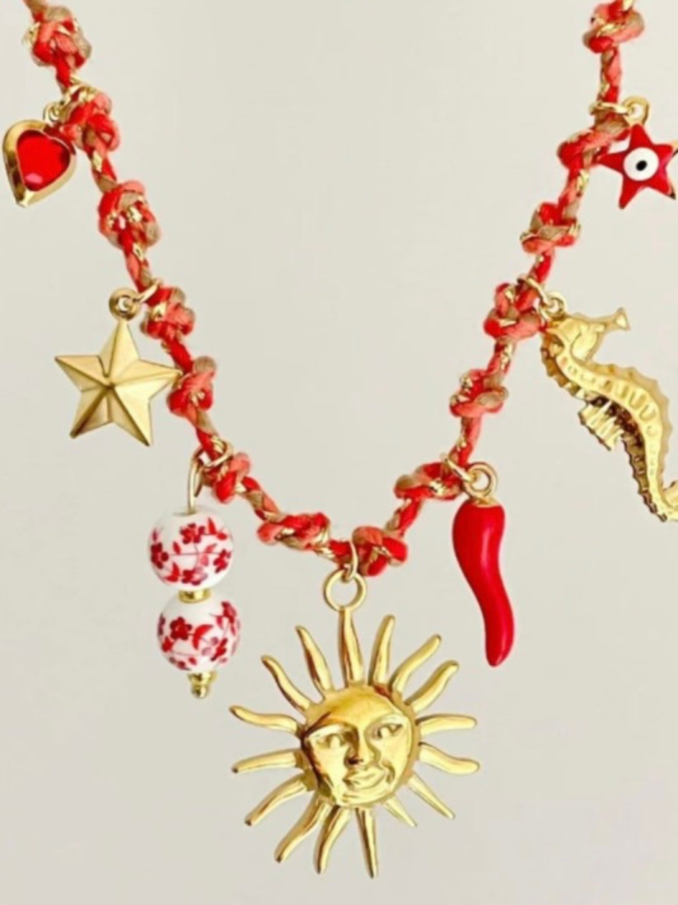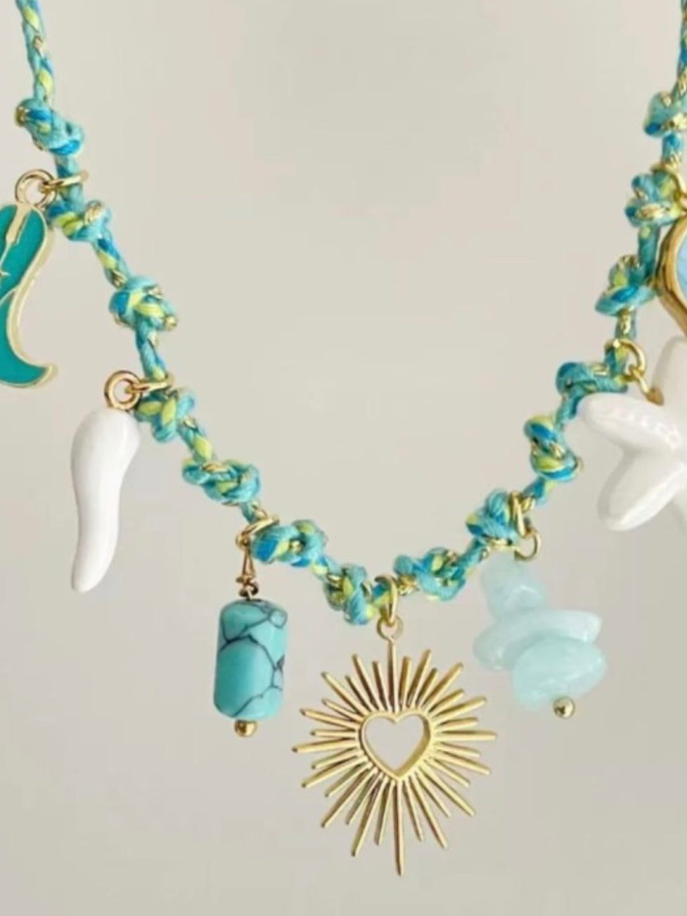 Starfish Tassel Cord Knot Stainless Steel Necklace