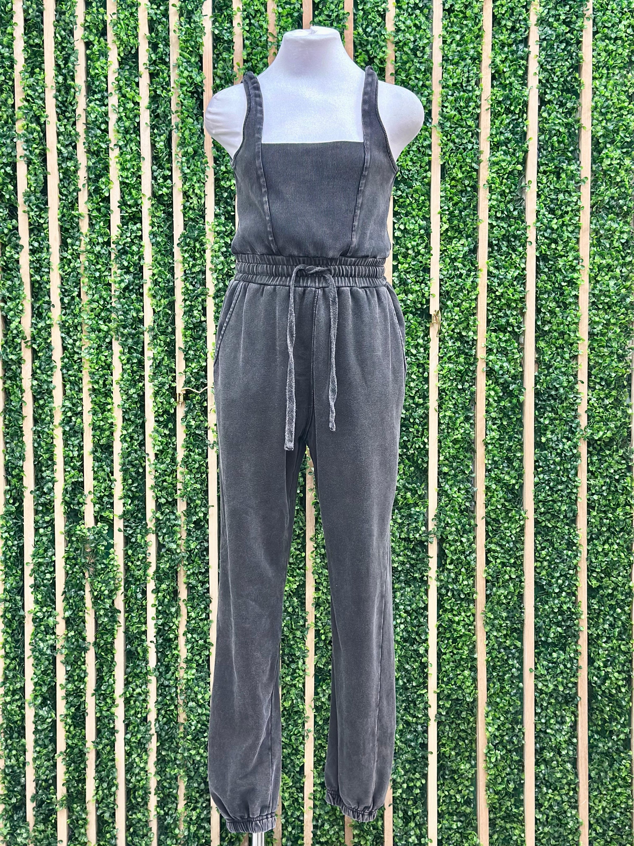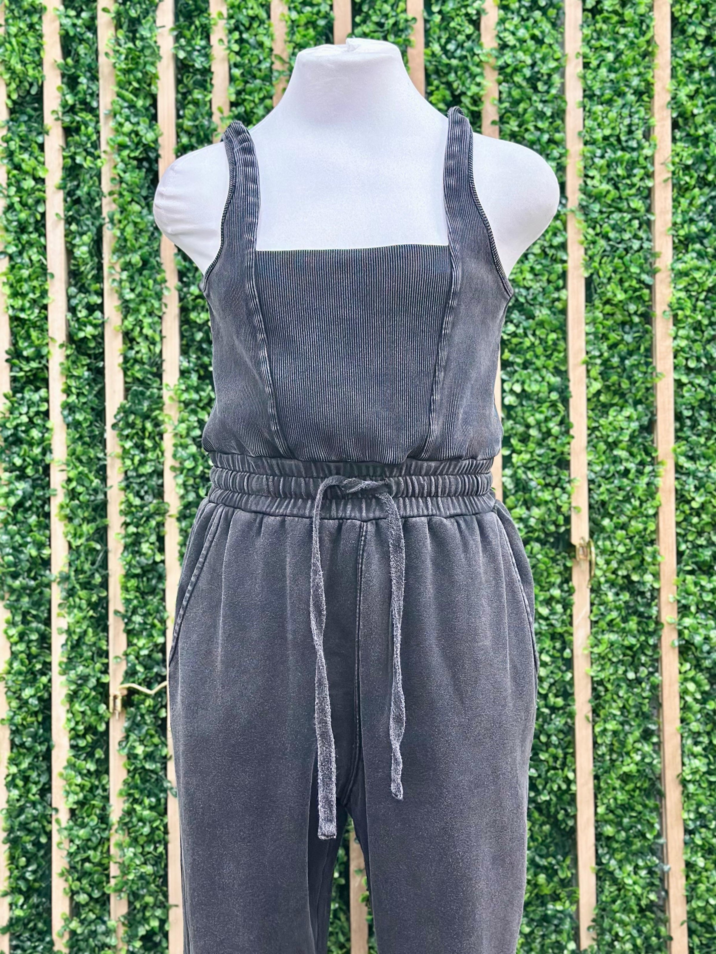 - Featuring a luxurious ash black fabric and a flattering cami style, this jumpsuit offers both comfort and sophistication.