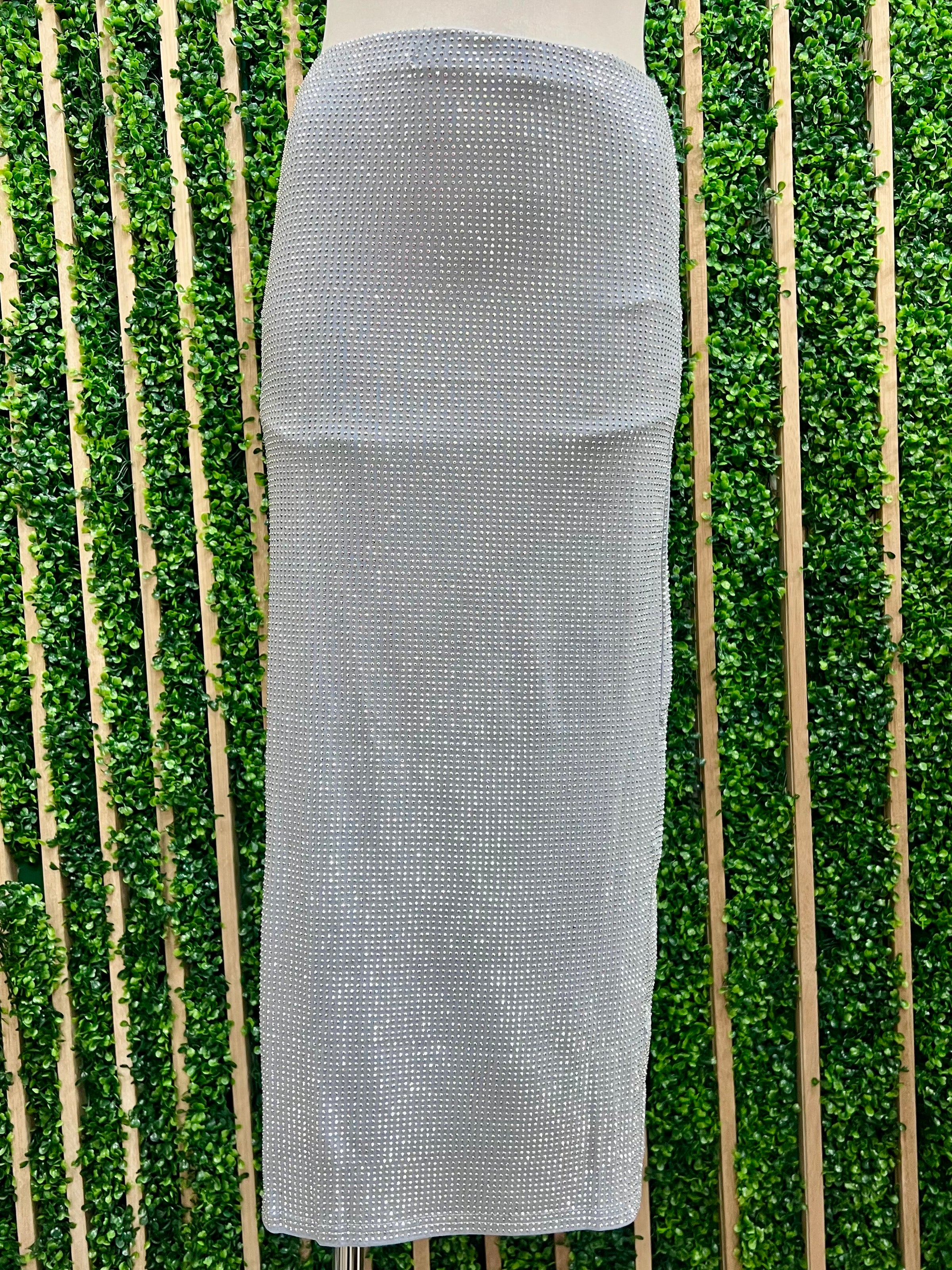 - Elevate your wardrobe with this striking Grey Studded Skirt Set, where contemporary edge meets refined elegance.