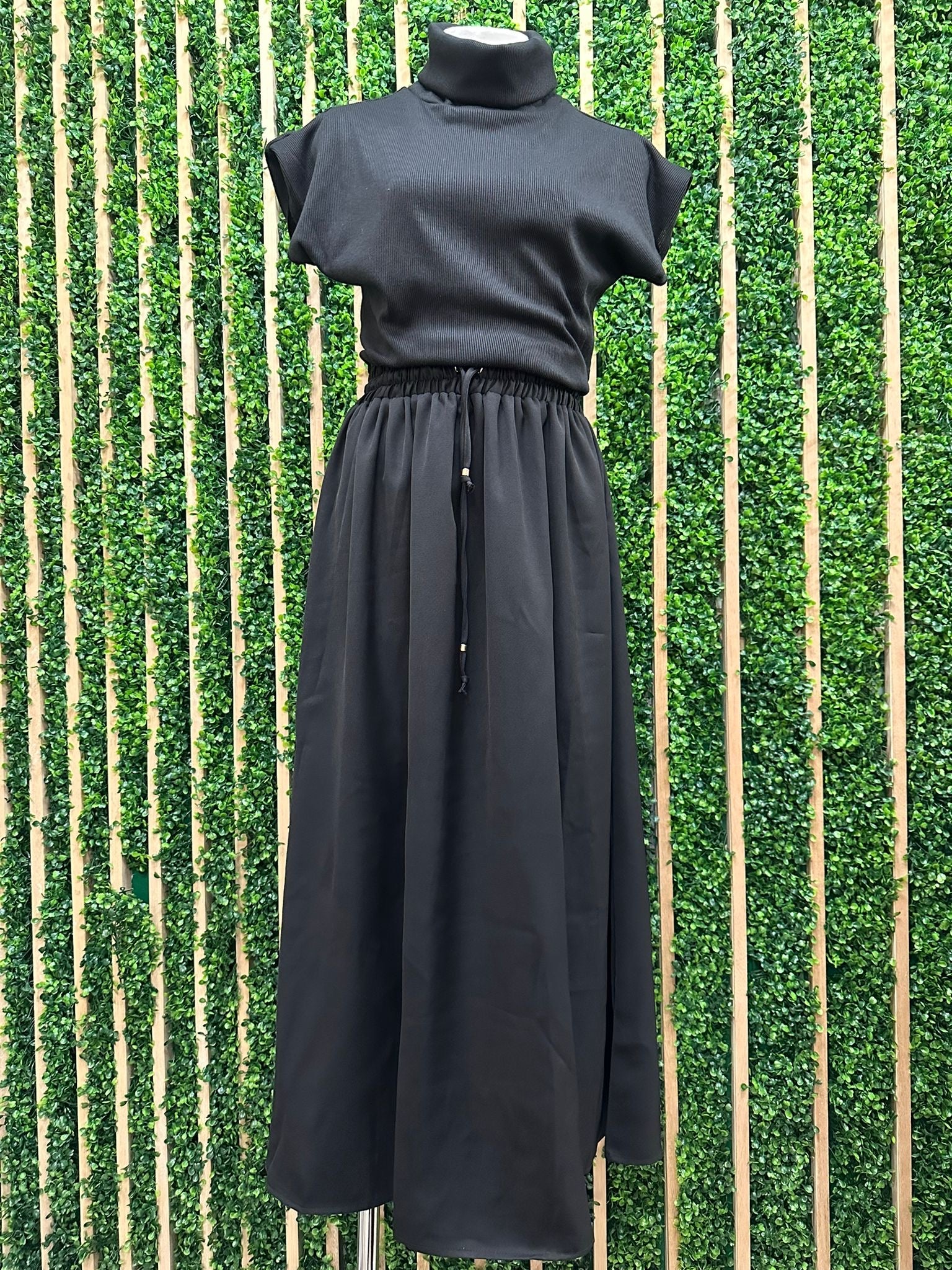 - Elevate your wardrobe with this sophisticated high neck sleeveless maxi dress—the perfect piece for making a refined statement.