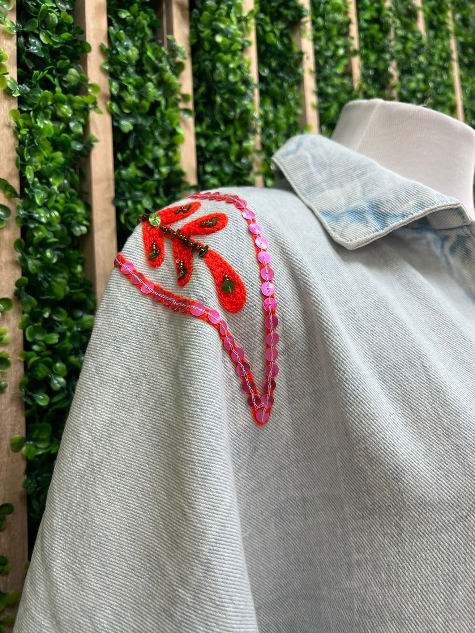 • Unique colorful embroidered back design