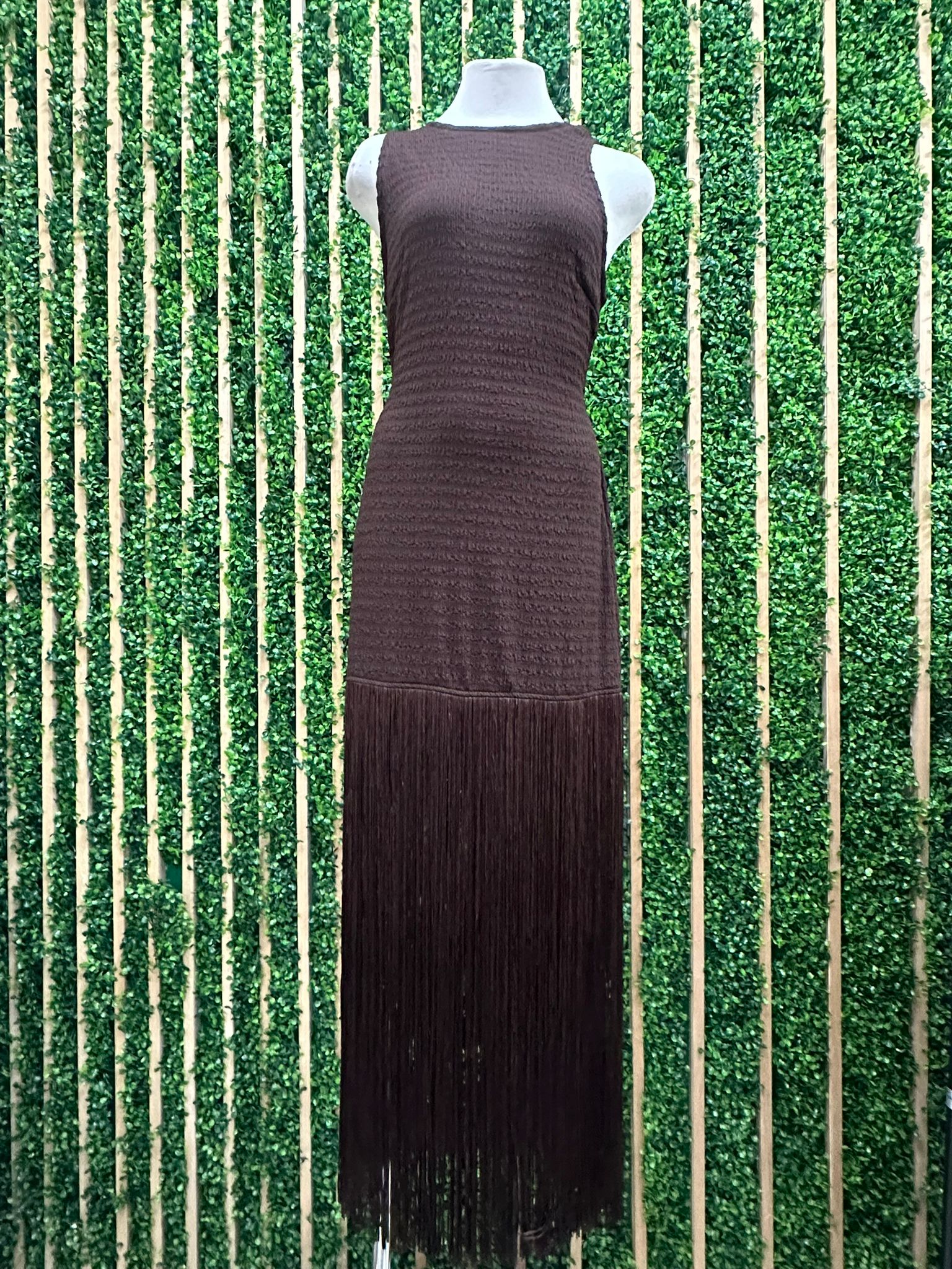 Beautiful Textured Brown Tassel Skirt Long Dress