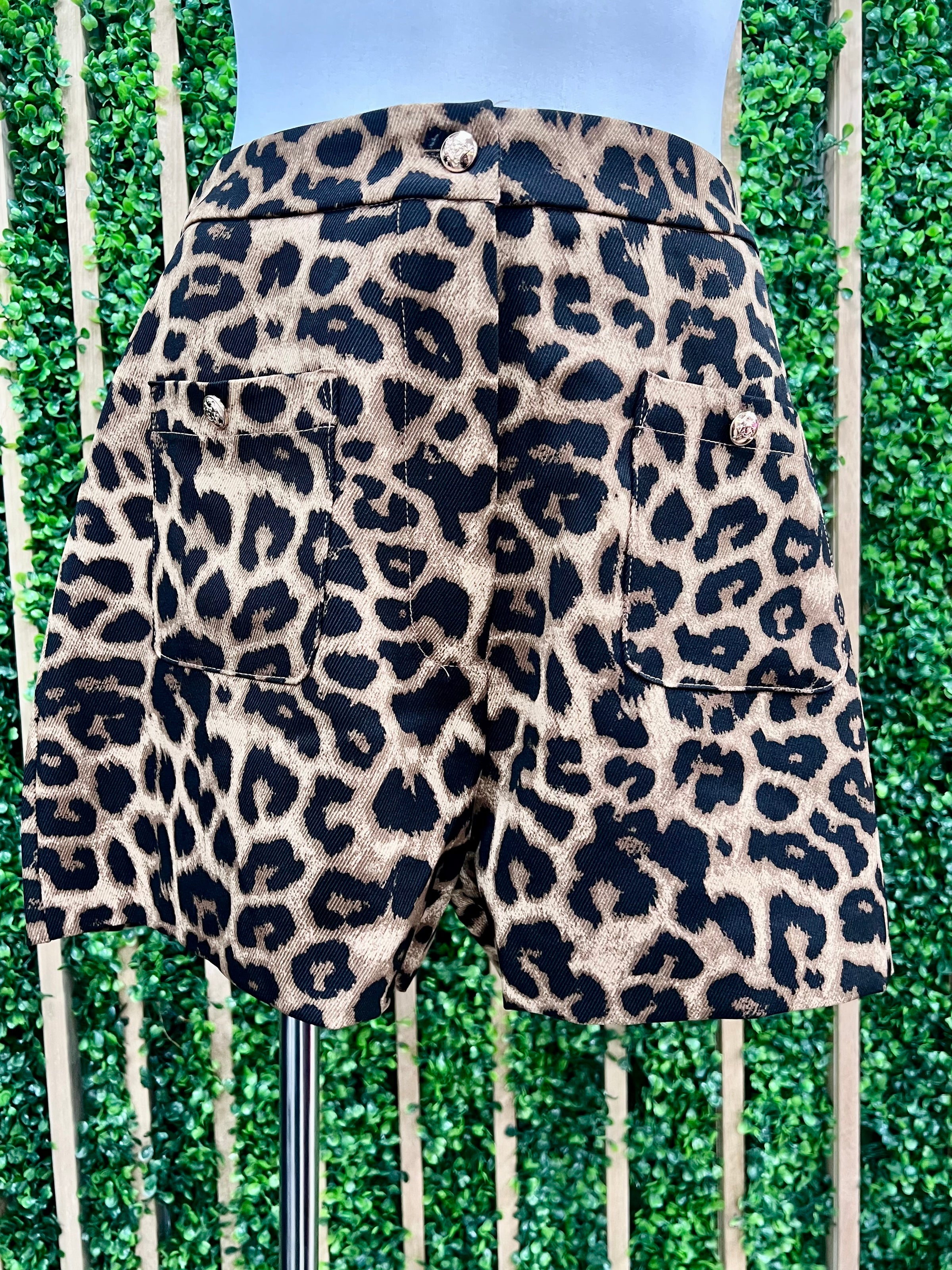 - These stylish shorts feature a unique animal print design and functional pockets for convenience.