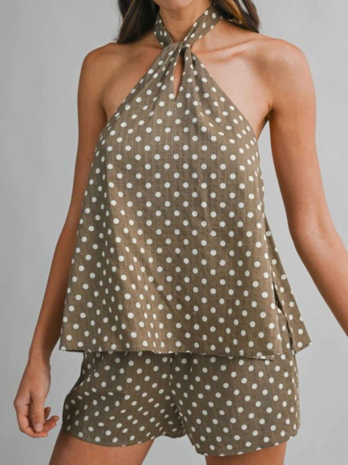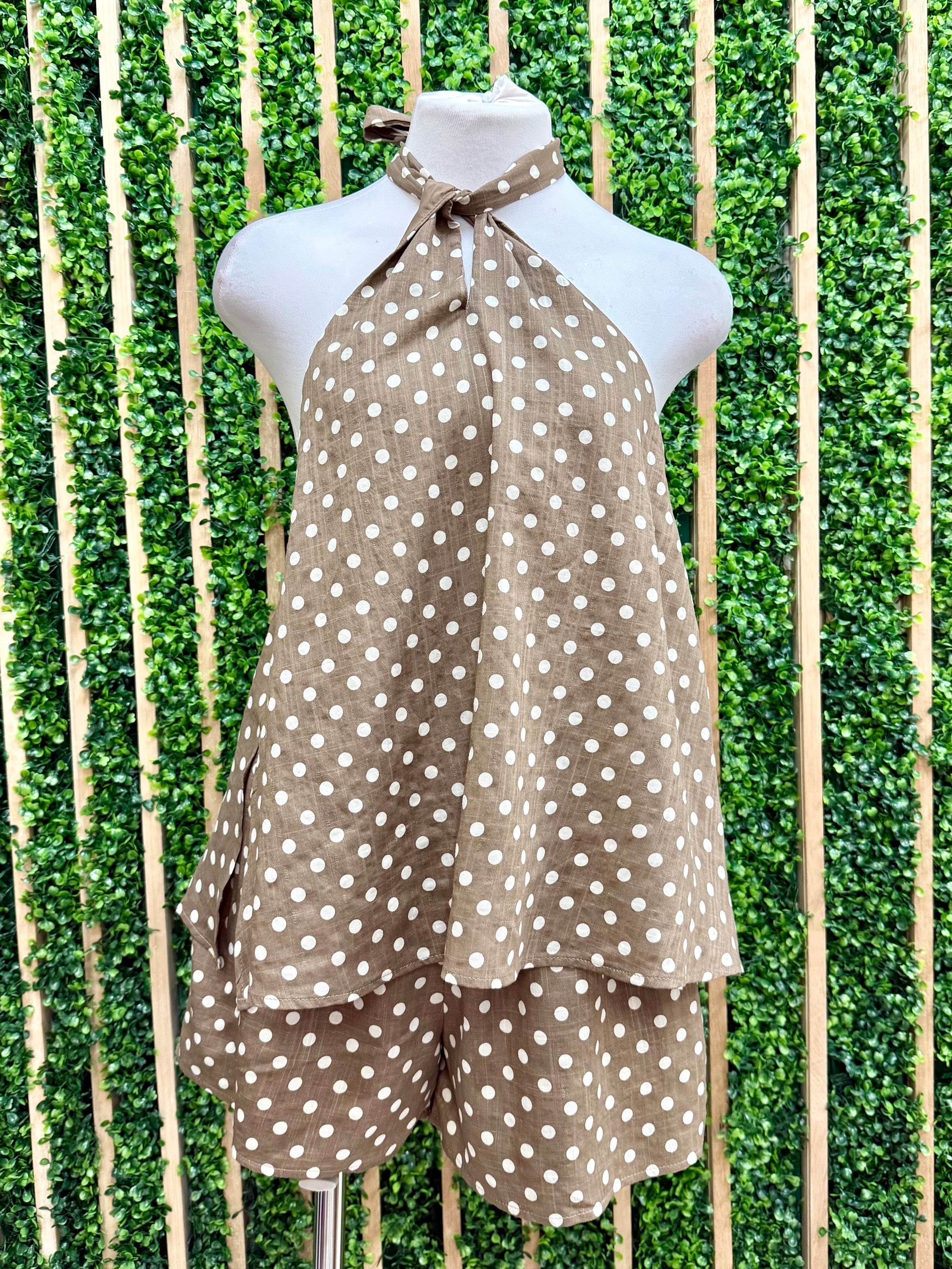 Pair them with the matching polka dot halter top for a coordinated boutique set or style them with a simple white tee for a casual summer outfit.