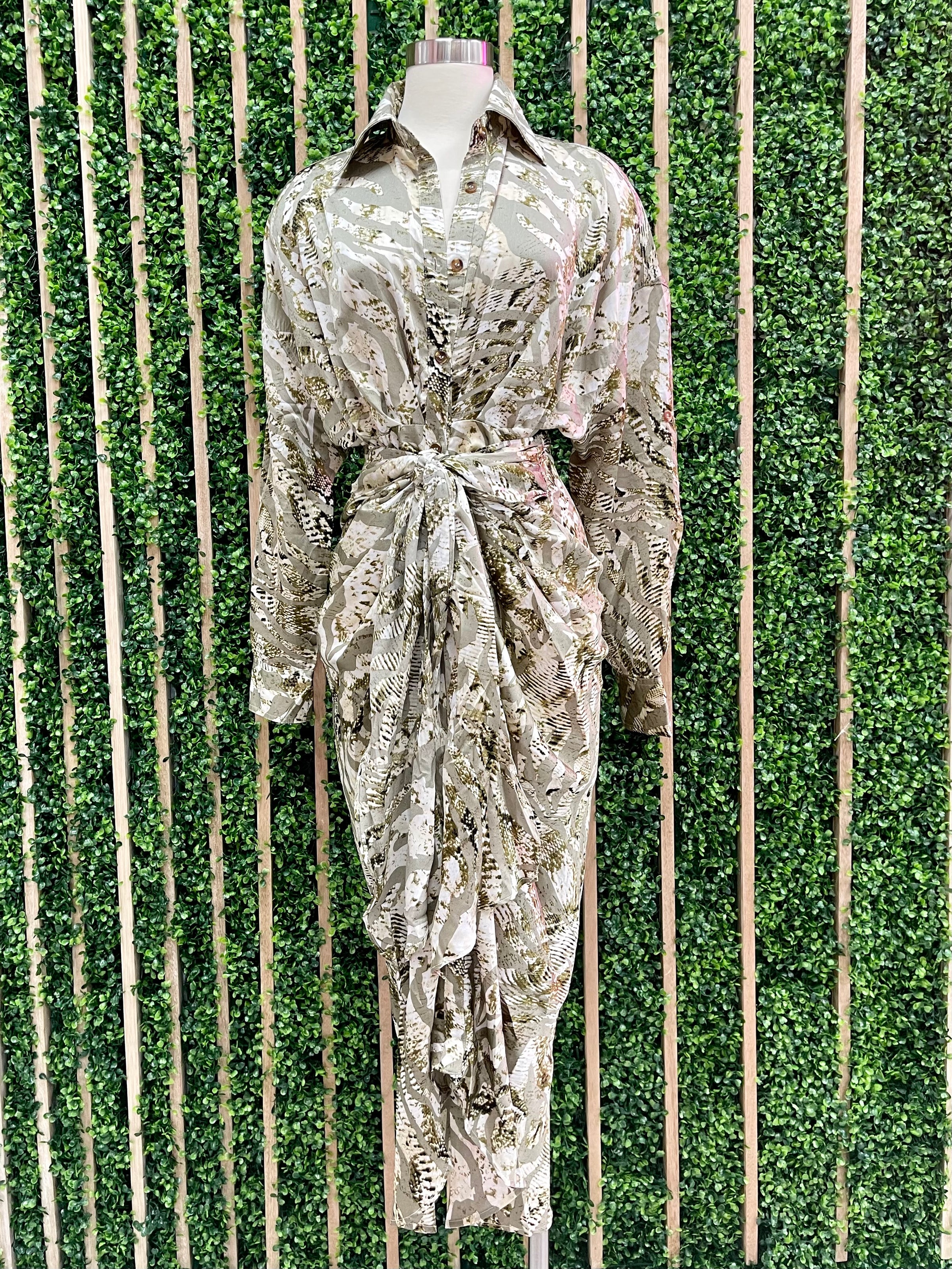 Elegant Snake Print Button Up Midi Dress