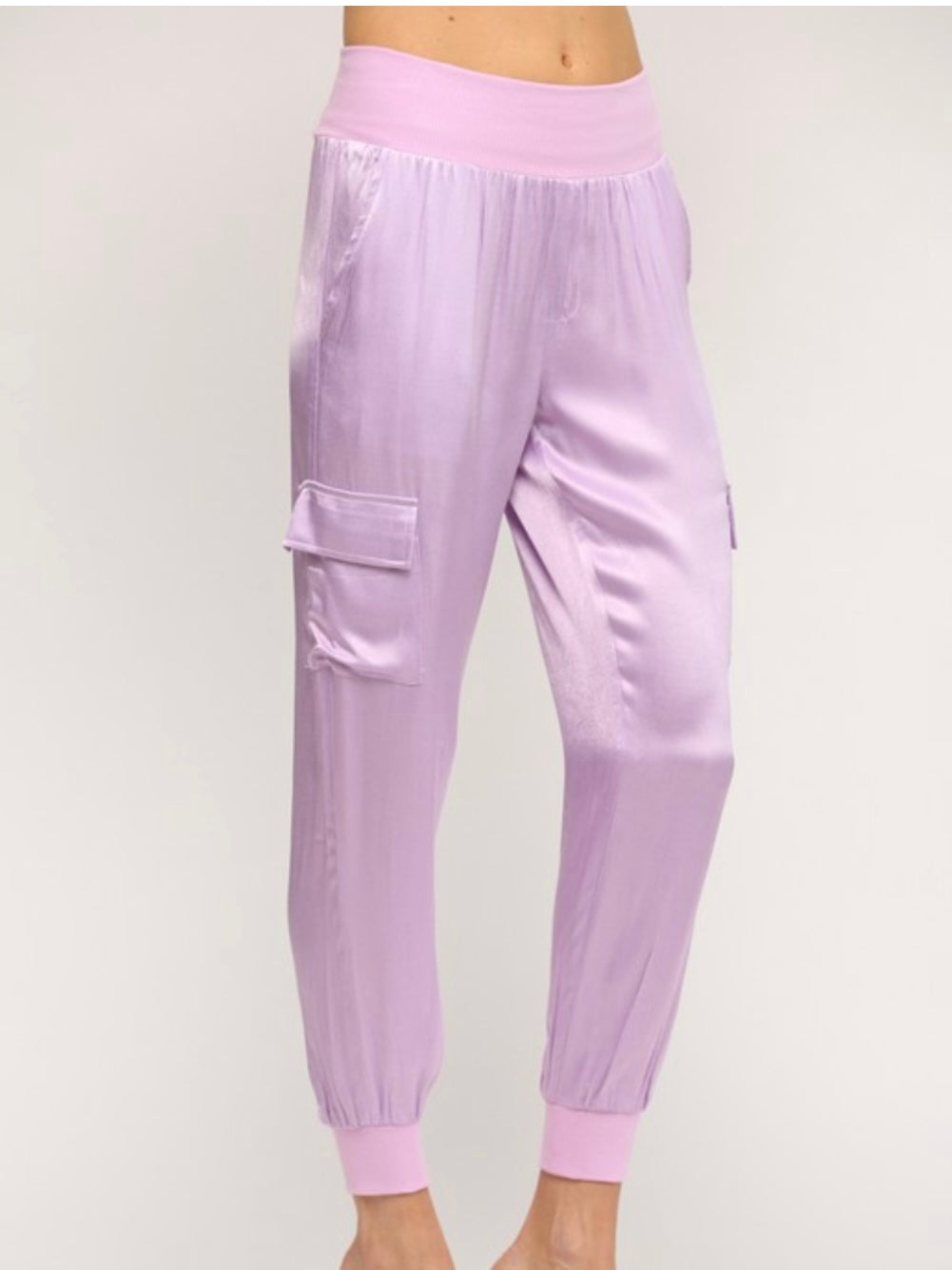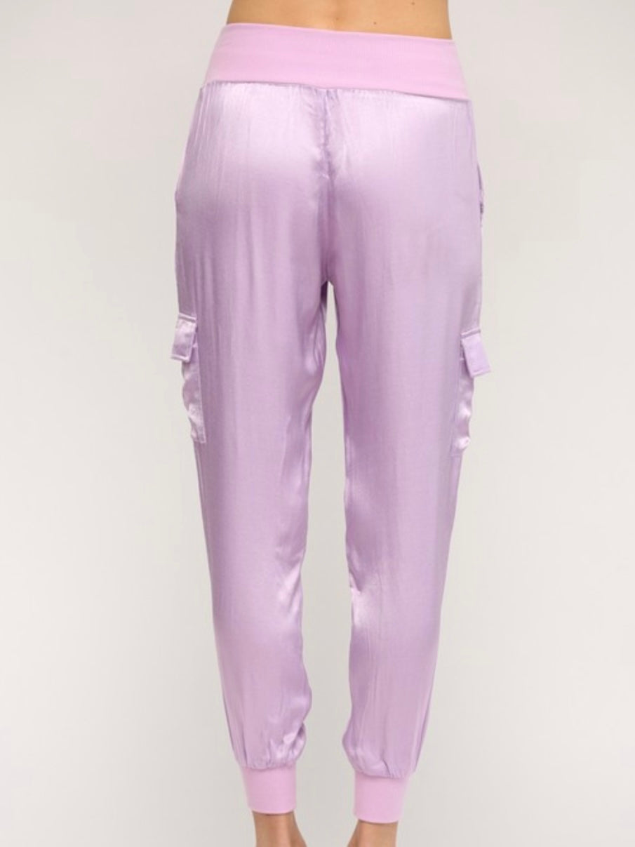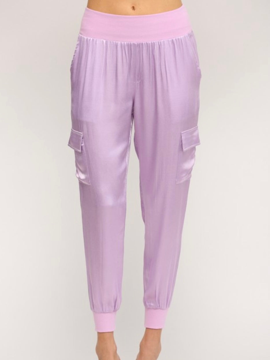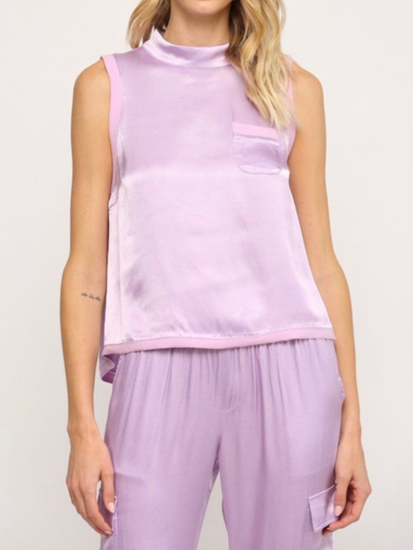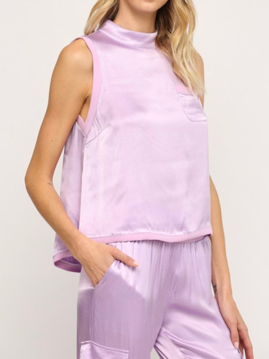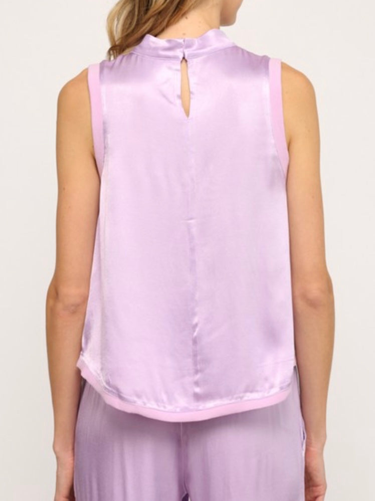 Lavender Rib Trim Satin Top
