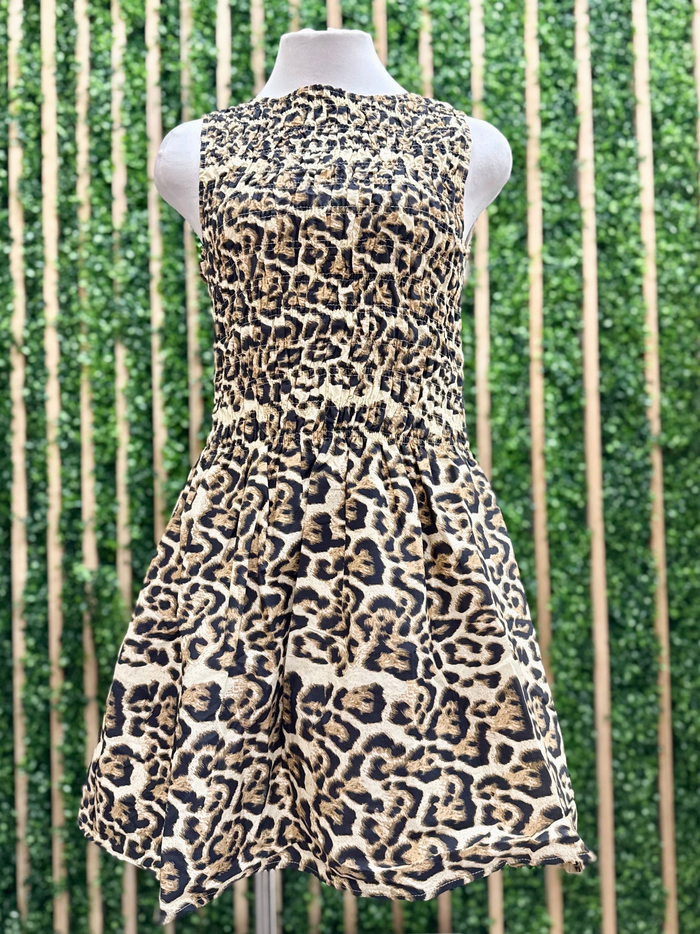 • Elevate your style with our Leopard Print Smocked Short Dress!