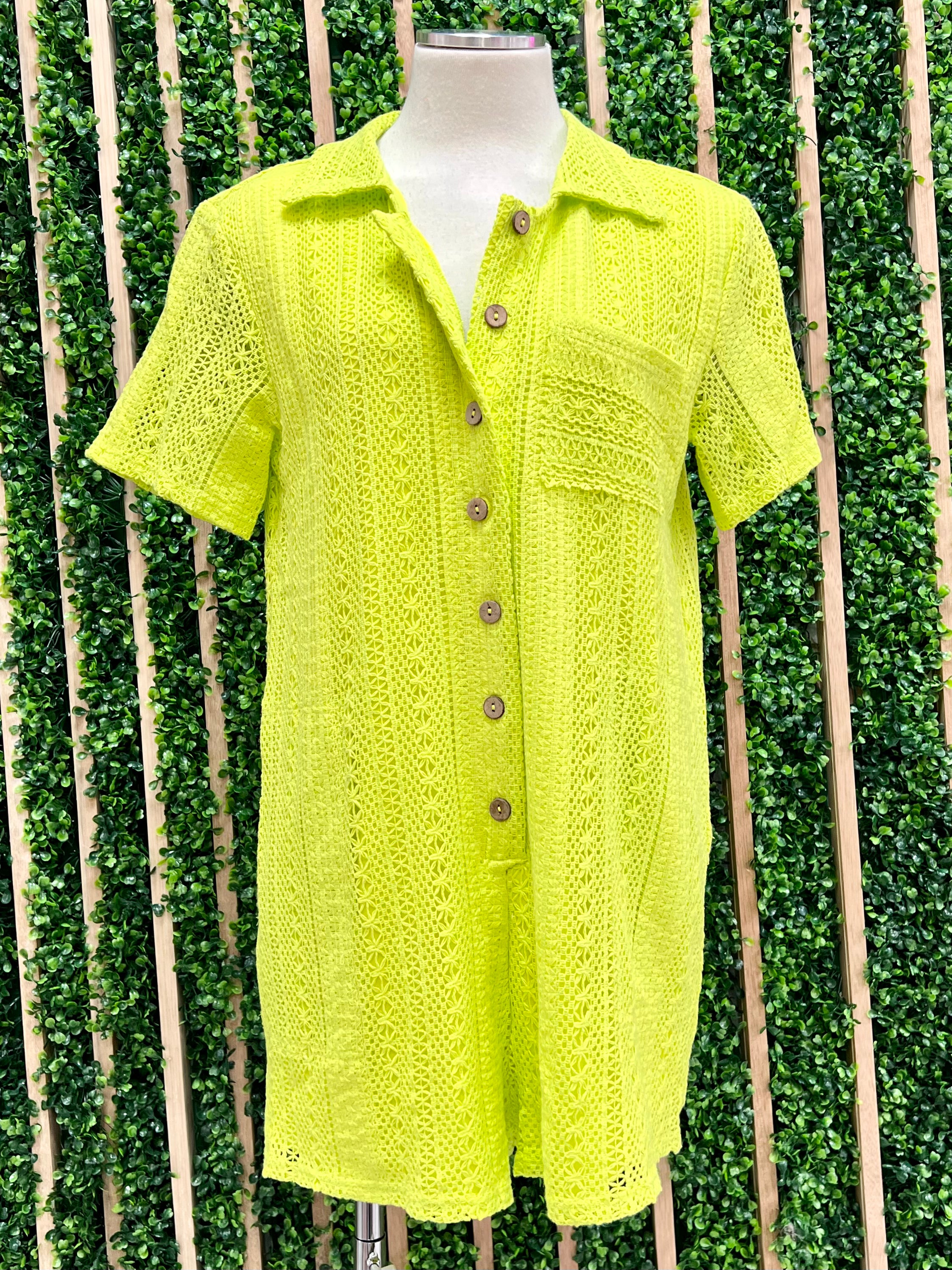 Lime Crochet Loose Fit Romper