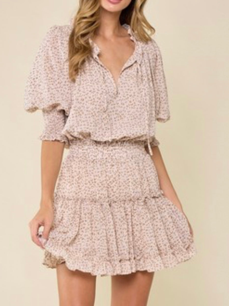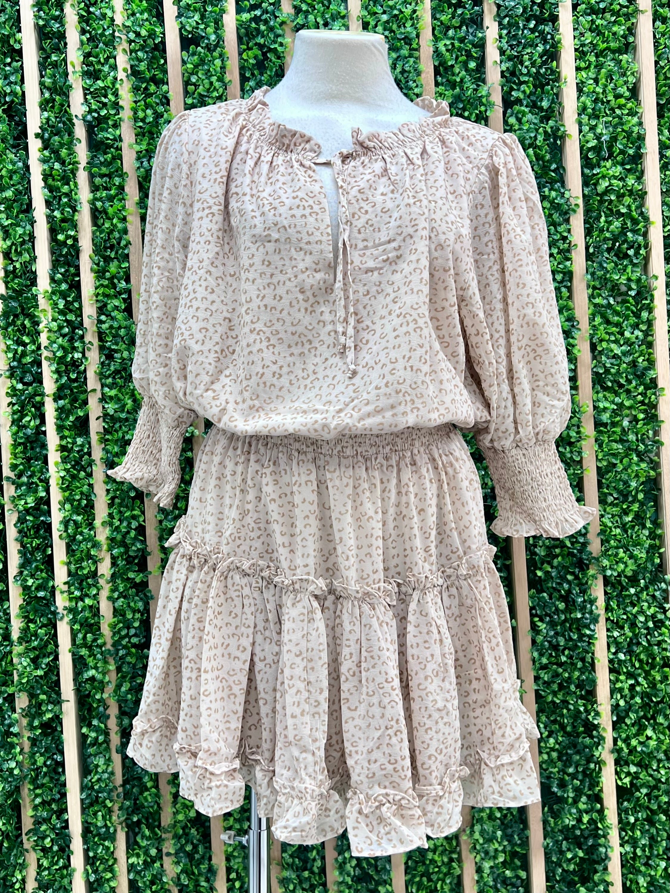 Neutral Leopard Tiered Short dress