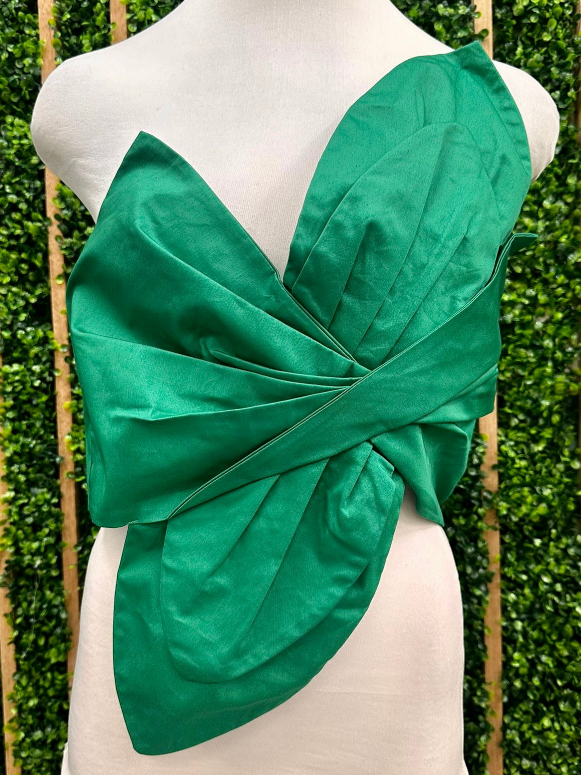 - Features an unique twisted and pleated bow at front