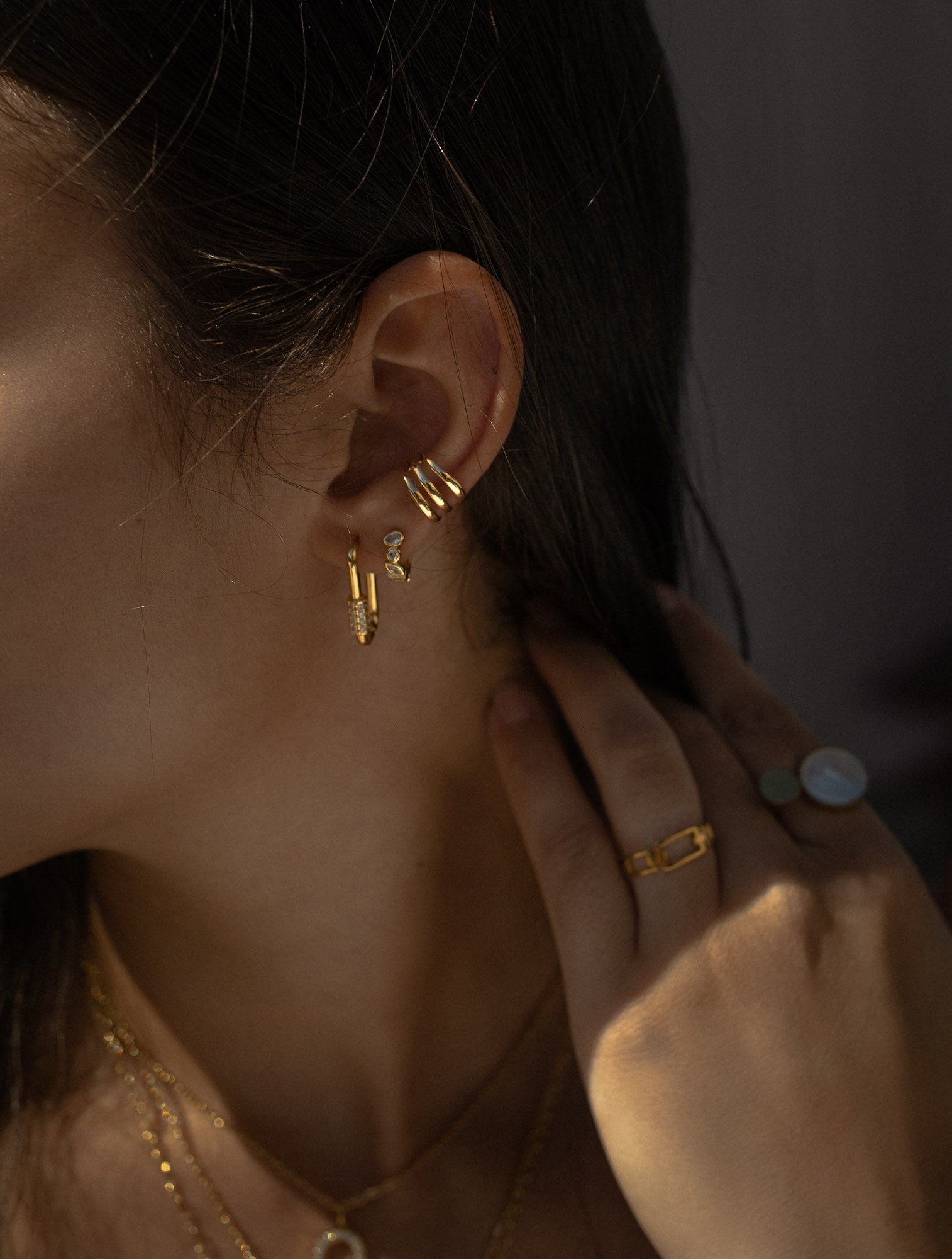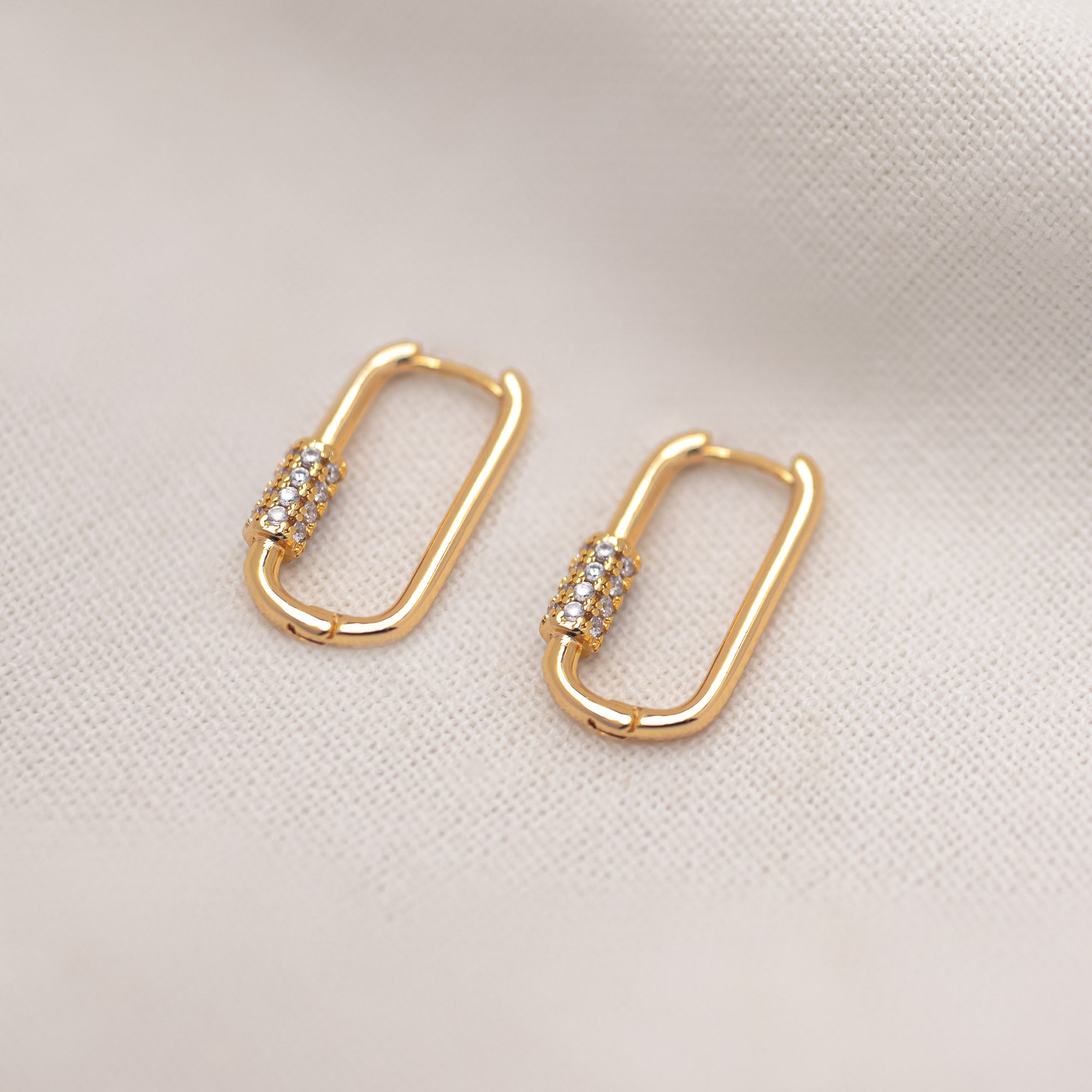 These Shimmer Earrings are crafted from stainless steel, with micro pave rhinestones providing subtle shimmer. Durable and lightweight, they are the perfect accessory for any occasion. The stainless steel construction ensures your earrings will retain their sparkle.
