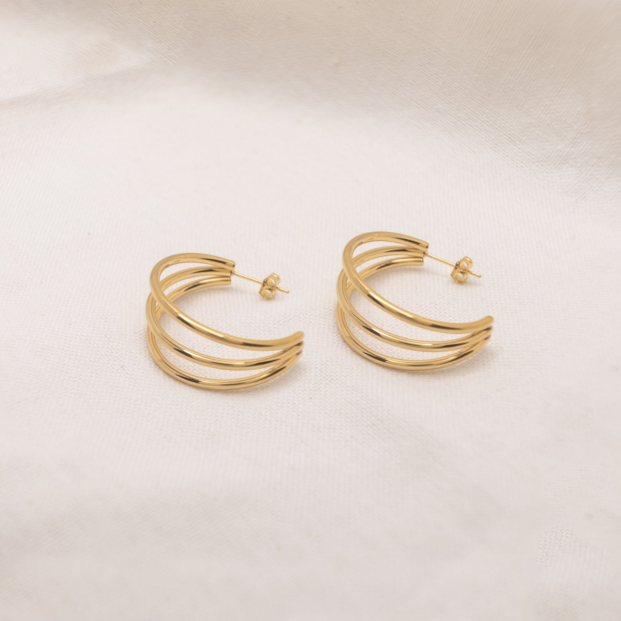 Three Strand Hoops offer a genuinely unique take on the classic hoop earrings design. Crafted from triple lanes of durable stainless steel, each hoop is 1.25 inches in diameter, adding a touch of boldness to any look.