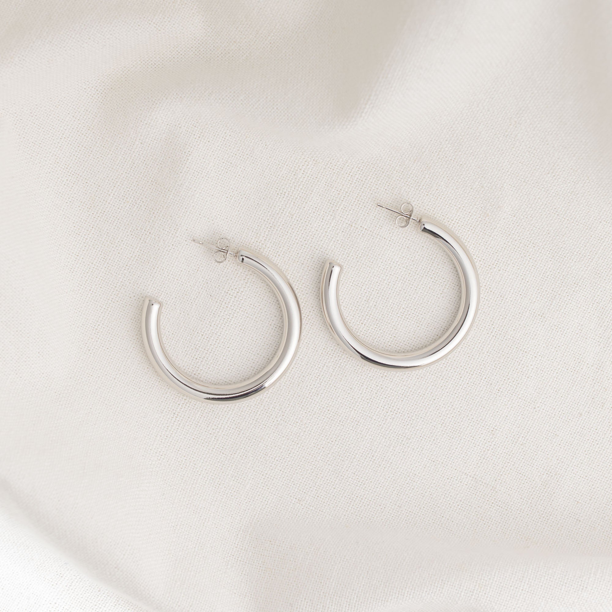The Vesper Earrings have a 1½" diameter and feature stainless steel construction with gold and silver colors for a stunning, modern look.