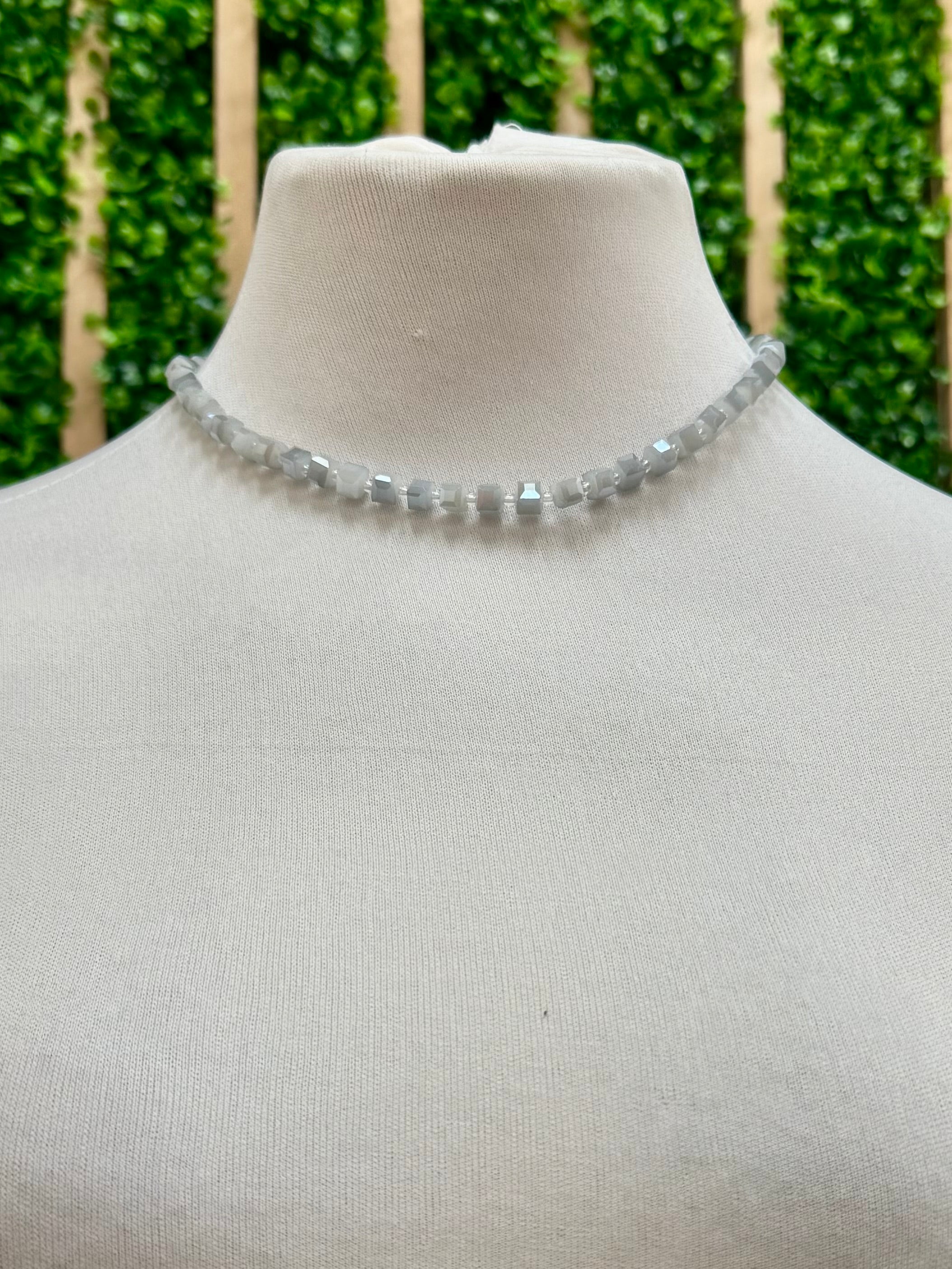 - Add a touch of modern sparkle to your wardrobe with our Small Crystal Cube Bead Necklace!