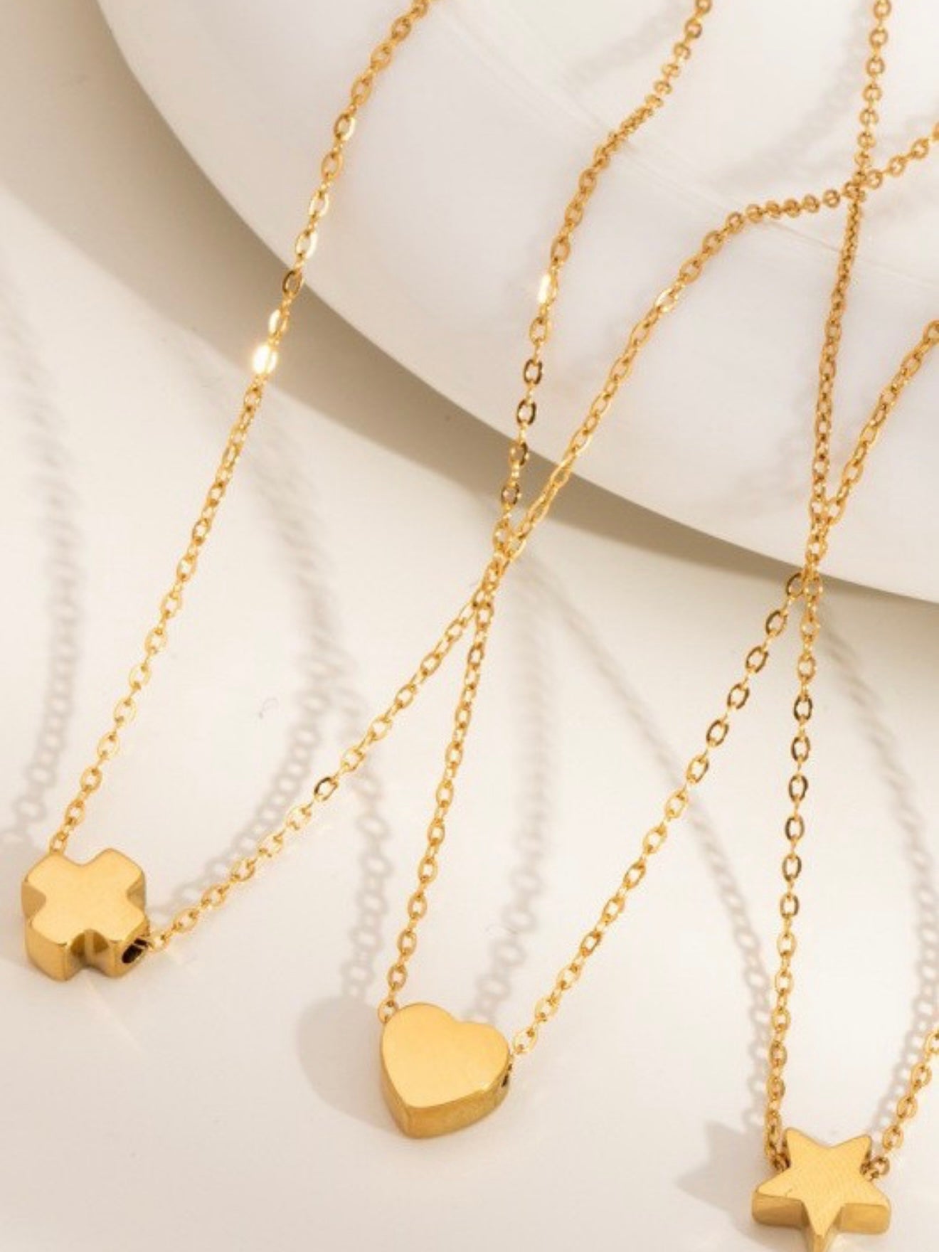 - 18K stainless steel heart, star, cross necklace combines timeless elegance with unmatched durability. Tarnish-free and crafted for everyday wear, it features a sleek, minimalist heart, cross or star pendant suspended from a sturdy chain.
