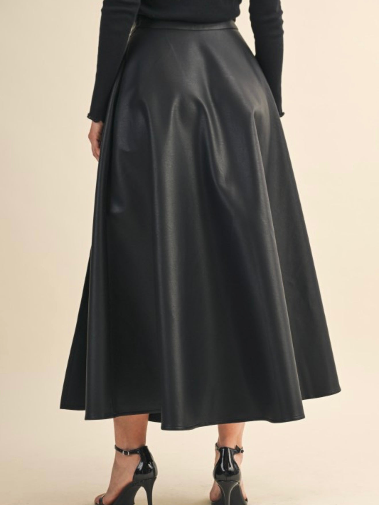 • Elevate your wardrobe with our Side Slit Pleather Midi Skirt!