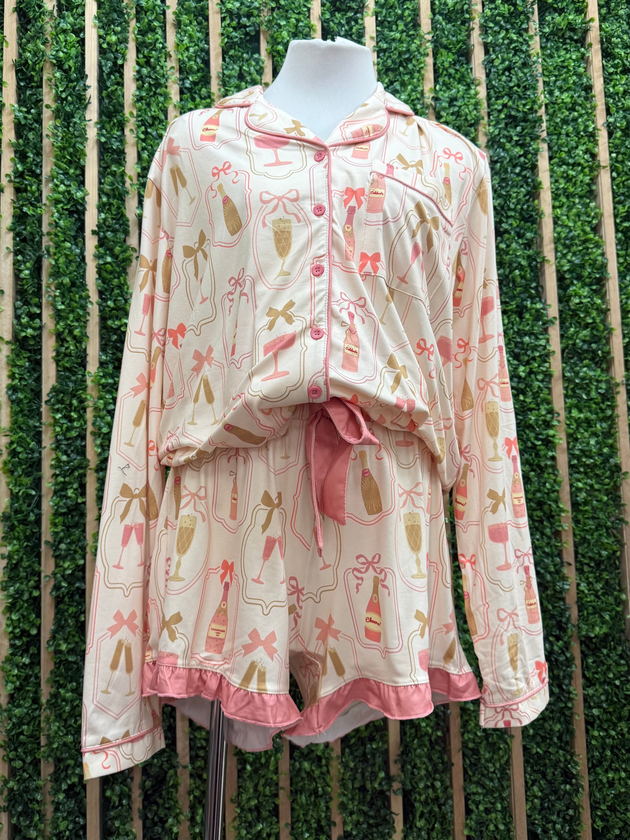 • Raise a glass and celebrate in style with our Cheers Champagne Short PJ Set! Made with luxurious materials, this set features a comfortable and flattering fit.