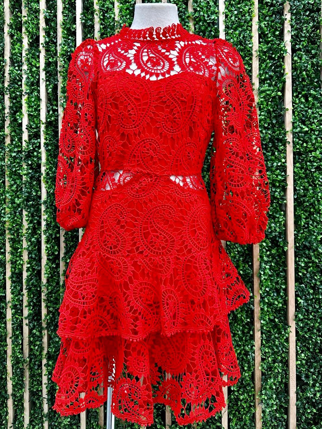 Beautiful Red Lace Tiered Skirt Short Dress