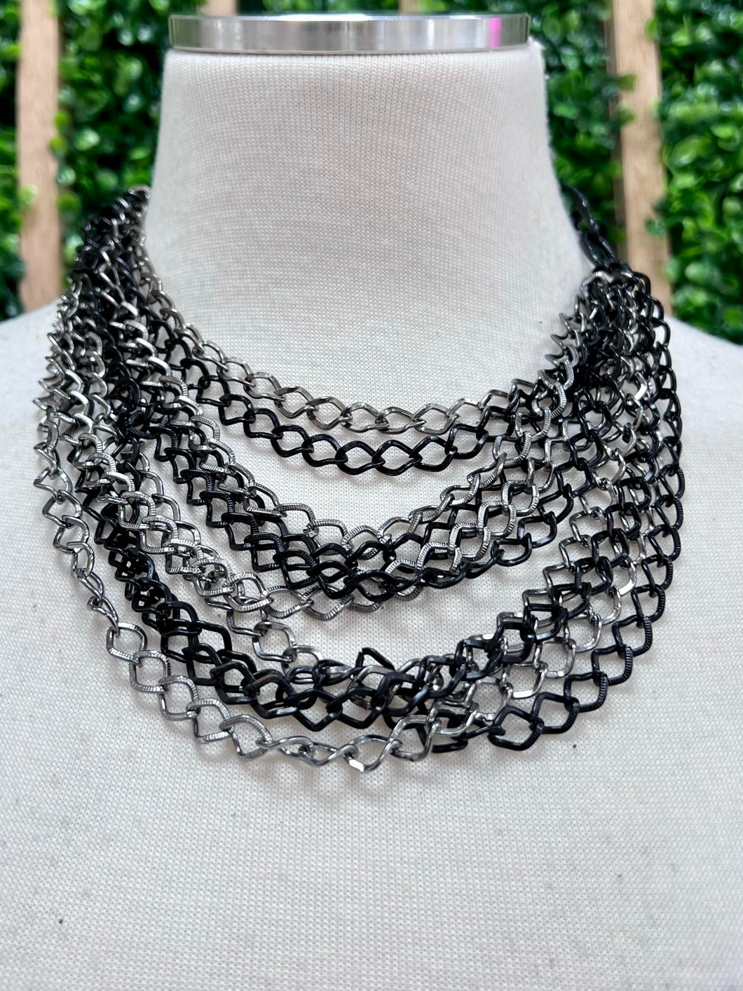 Black Hematite Cascading Multi Chain Necklace