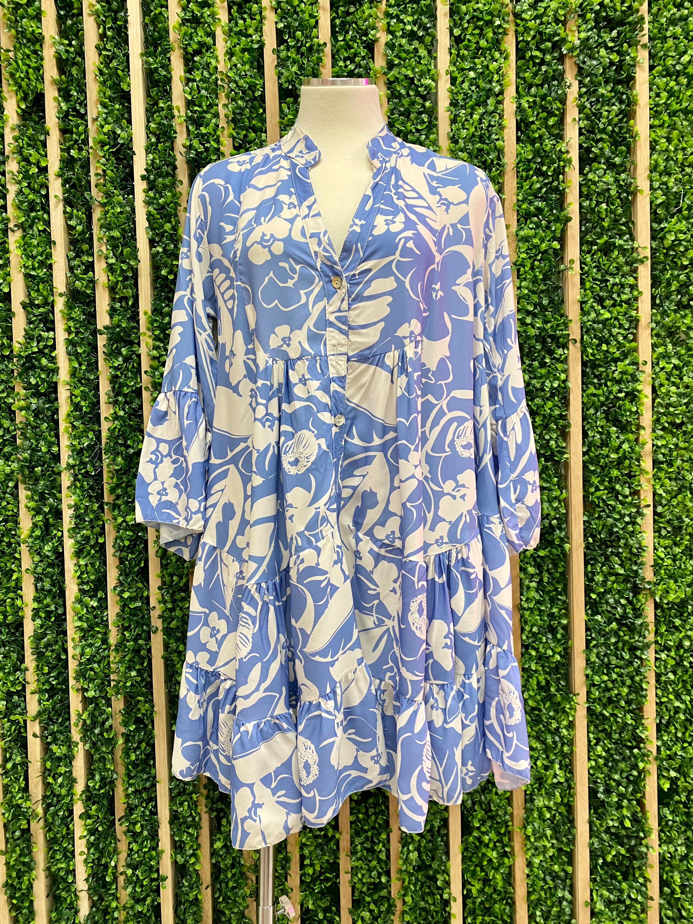 Blue Floral Tiered Short Dress