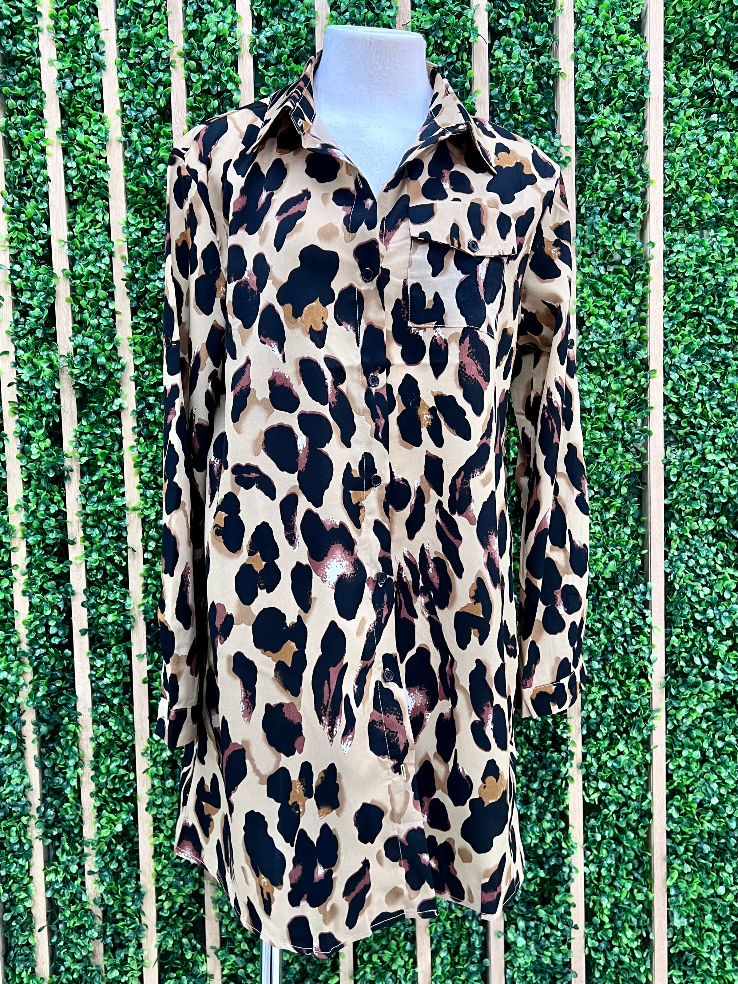 Brown Leopard Print Long Sleeve Short Dress