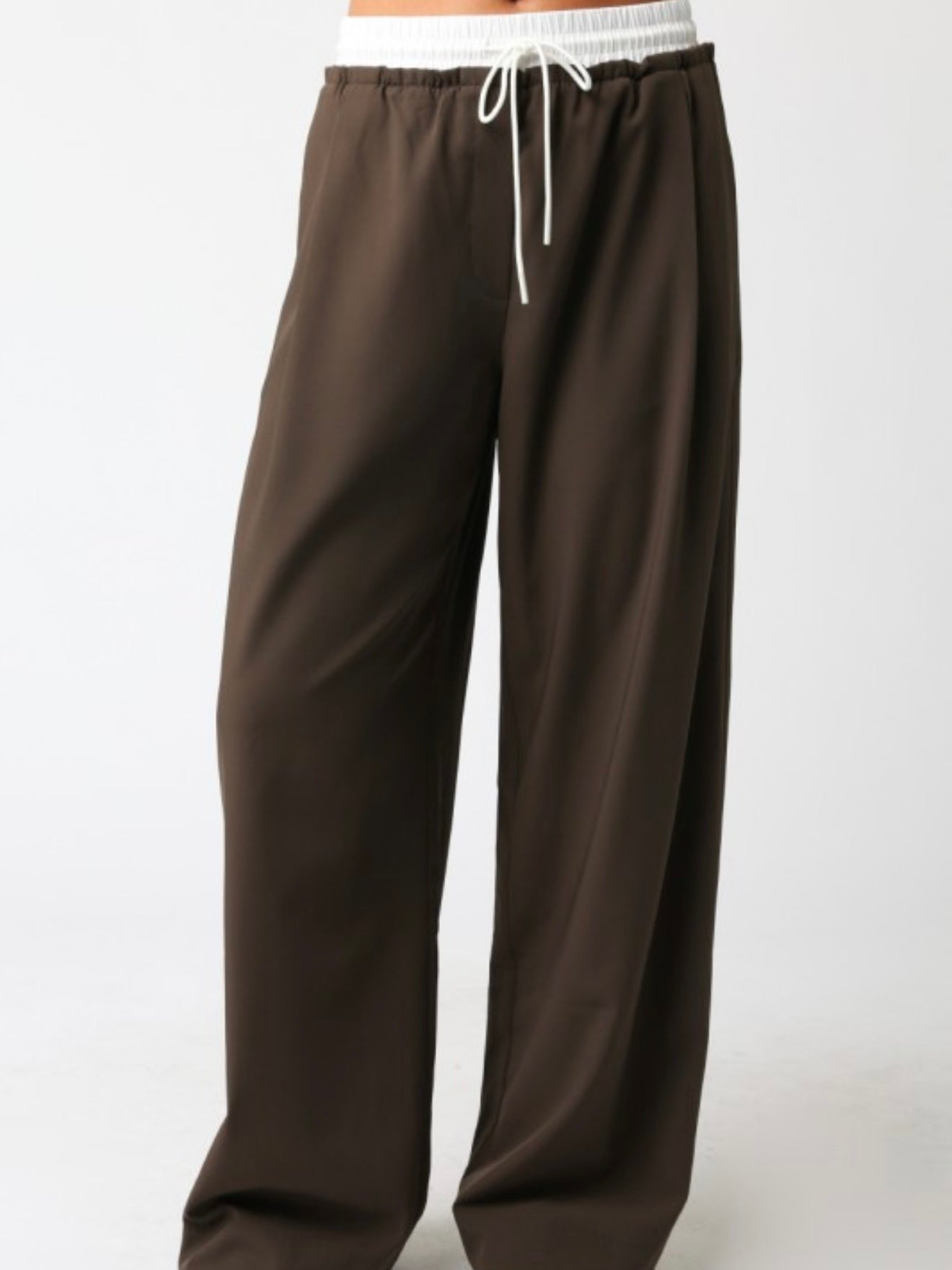 • Designed for a flattering fit and effortless style. The wide-leg cut offers comfort and movement, while the contrasting waistband adds a chic, modern touch.