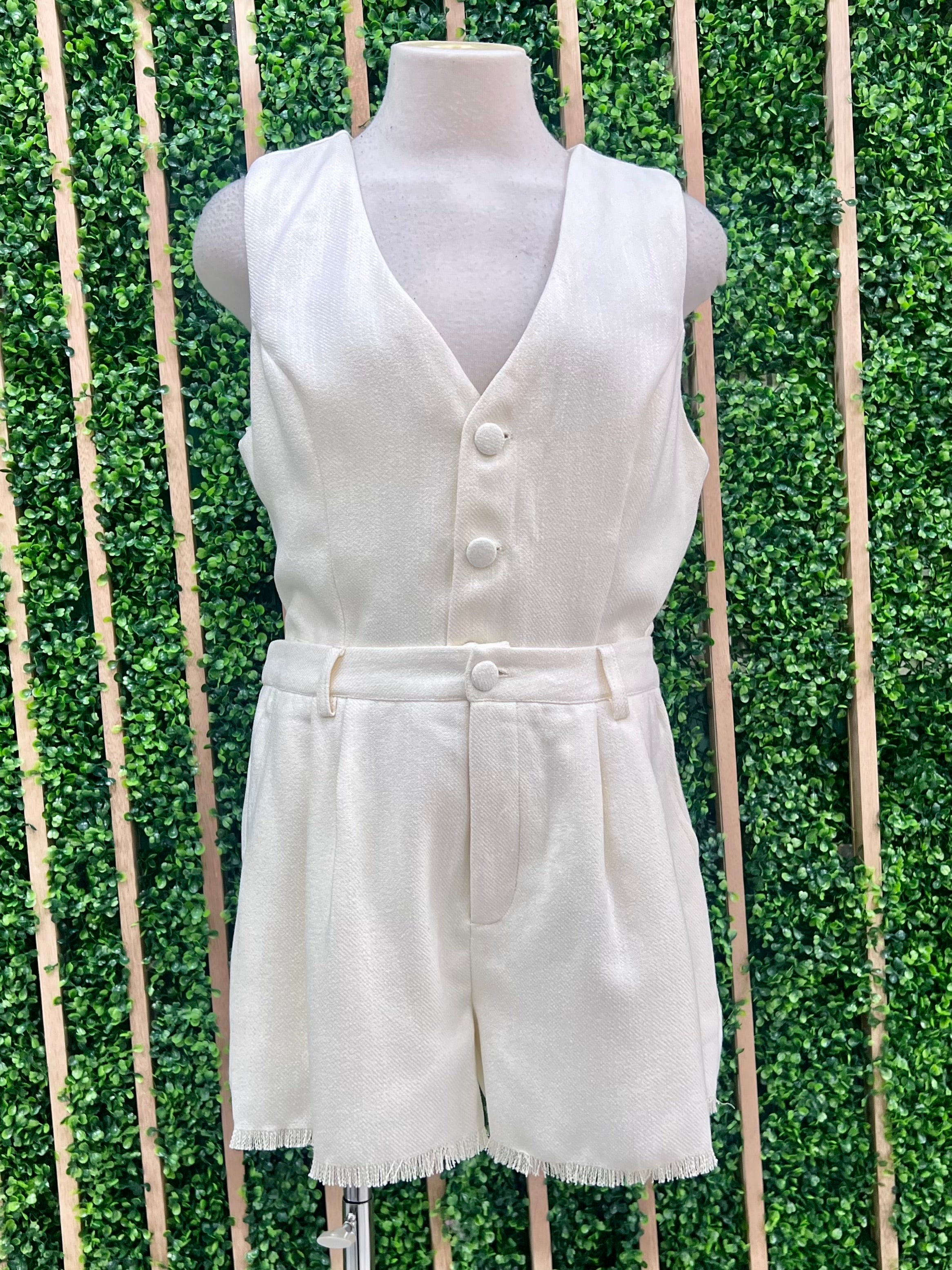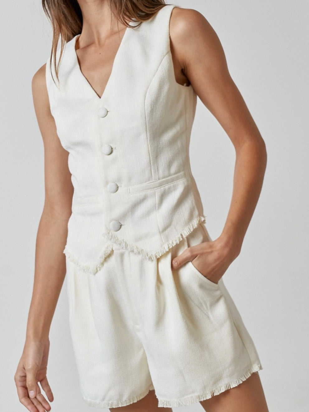 Cream Frayed Linen Vest