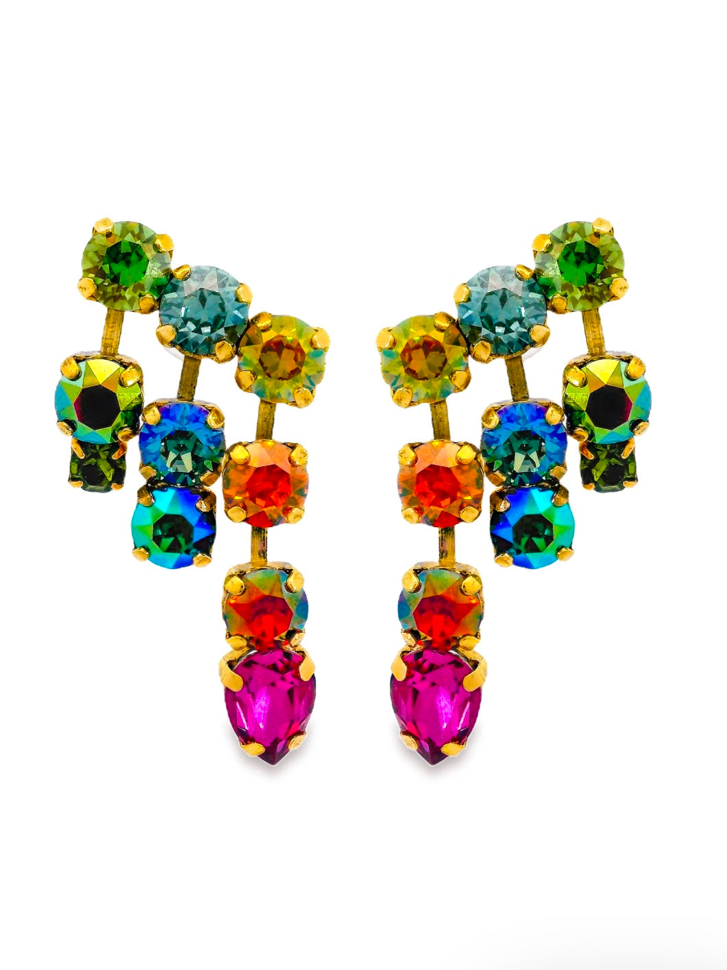 - . These 1.25" long earrings are crafted with high quality crystals on an antique Gold plated brass base.