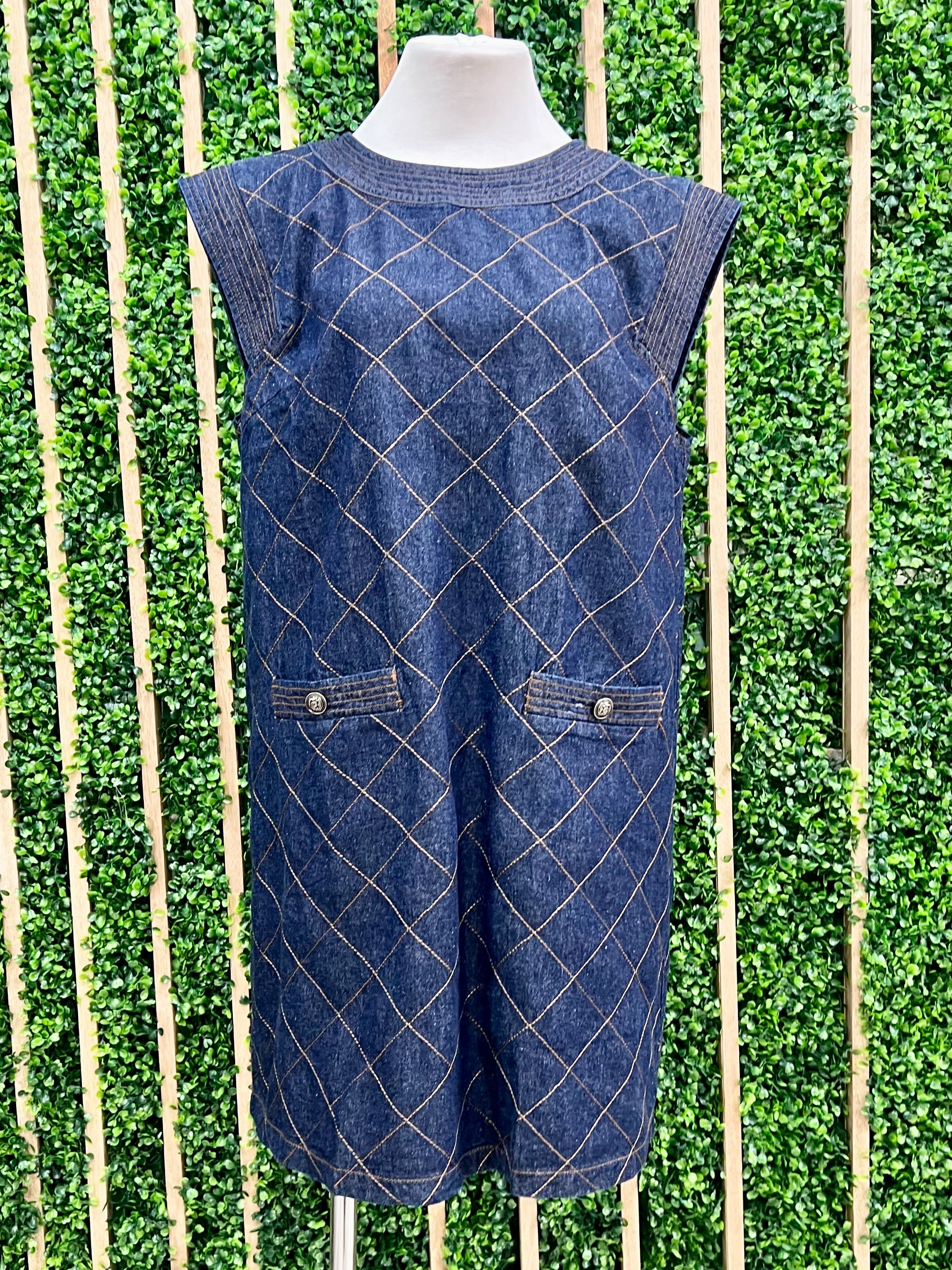Dark Denim Quilted Short Dress