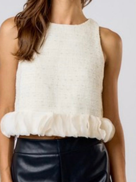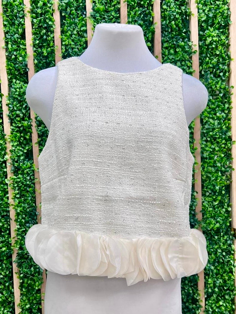 Exquisite Circle Trim Ivory Tweed Top
