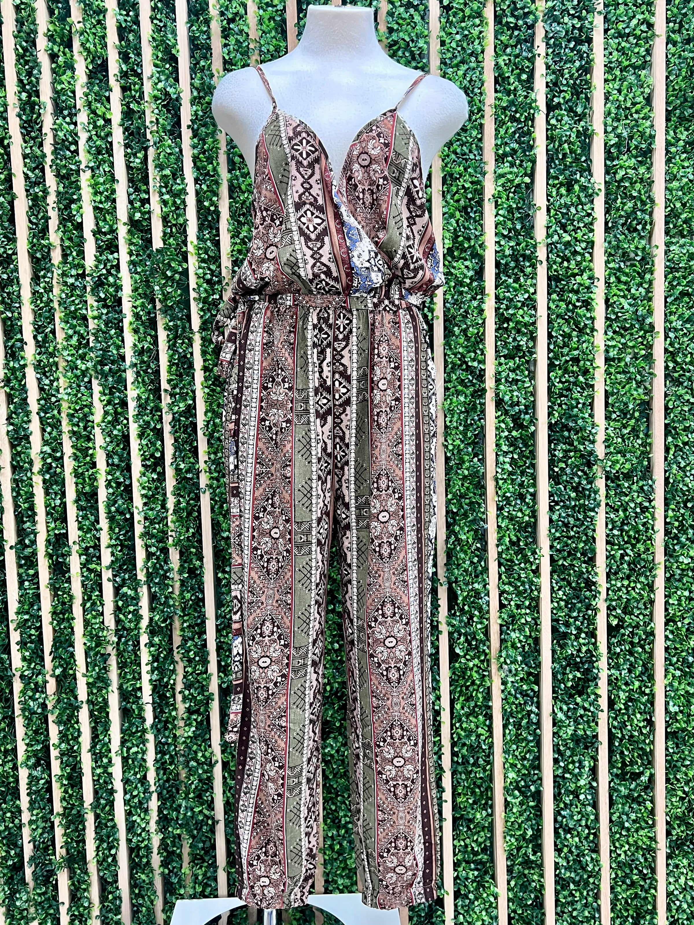 Brown Multi Print Wrap Jumpsuit